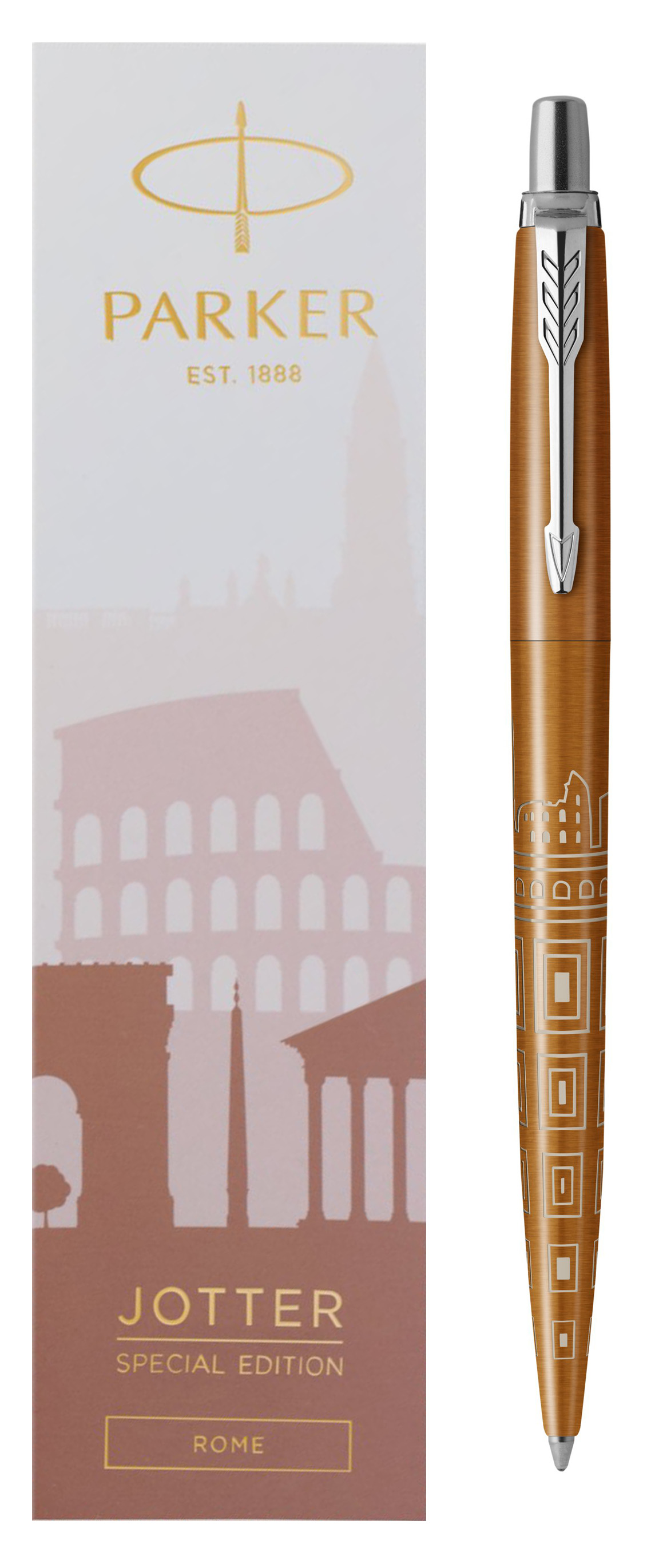 Ручка шариковая Parker Jotter Rome Bronze CT от официального дилера Parker в Новосибирске. Вы можете дополнительно заказать гравировку, которая подчеркнет Вашу оригинальность и придаст памятность статусному подарку. Все ручки Паркер поставляются в фирменном футляре.